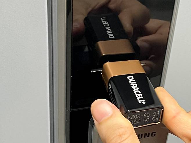 도어록 방전 시 9v 건전지 활용