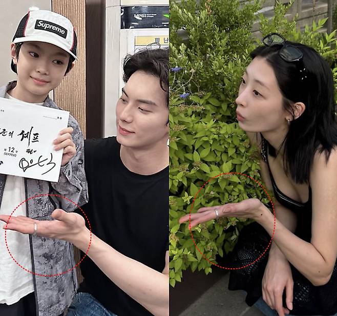 최근 드라마 ‘폭군의 셰프’ 촬영 종료 파티에서 찍힌 사진 속 이채민의 손가락에 은색 반지가 포착됐다. 이는 류다인이 과거 SNS에 공개했던 반지와 동일한 것으로 두 사람의 달달한 연애 전선을 다시 한번 확인하게 했다.