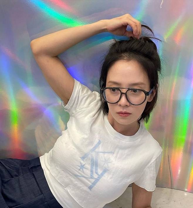 공개한 사진에서 송지효는 커다란 뿔테 안경에 반팔 티셔츠를 입고 멍한 표정과 발랄한 미소 등 다양한 포즈와 함께 장꾸미 넘치는 사랑스러운 일상룩을 연출했다.