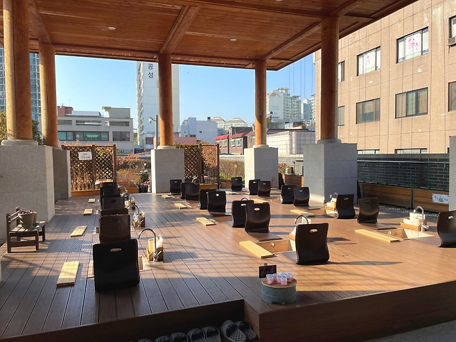 테라스에선 한눈에 내려다보이는 도심 풍경과 멋스러운 한옥 자태를 함께 감상할 수 있다. 두바이 국왕도 이곳의 풍경에 반해 한참을 앉아 쉬었다고 한다.