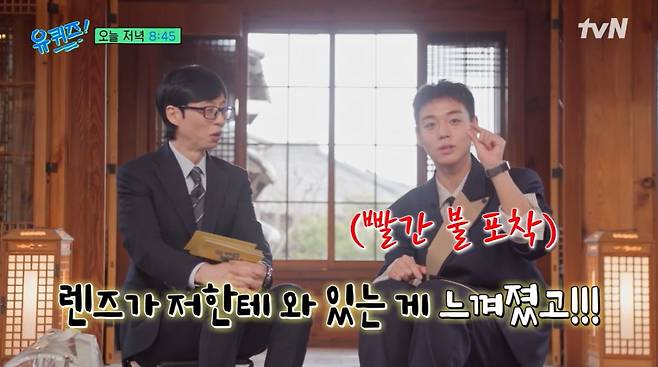 박지훈은 "렌즈가 저한테 와 있는 게 느껴졌다. 빨간불이 떠 있는 게 느껴졌다"라며 "'어? 됐다. 찍혔다'라는 생각이 들더라. '나 찍혔나 보다' 싶었다"고 전했다. 유재석은 "소위 말하길 '한 컷 먹었다'"라며 방송계 용어로 맞장구쳐 웃음을 안겼다.