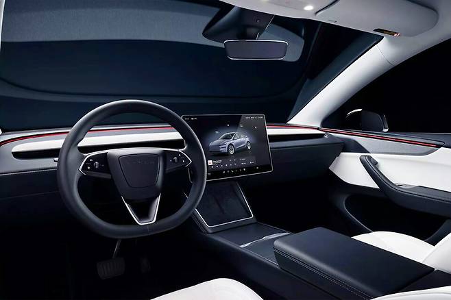 뉴 모델 Y 퍼포먼스 외장디자인은 비교적 변화가 크지 않은 모습이다. 전면부는 사이버트럭에서 영감 받은 새로운 라이트 시그니처가 동일하며, 범퍼에 와이드한 공기흡입구 및 하단 양 옆에 역동적인 디자인을 적용해 스포티함을 더했다.