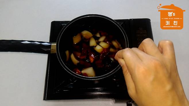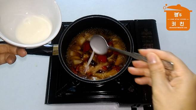 냄비에 물 1컵, 간장 4큰술, 식초 4큰술,