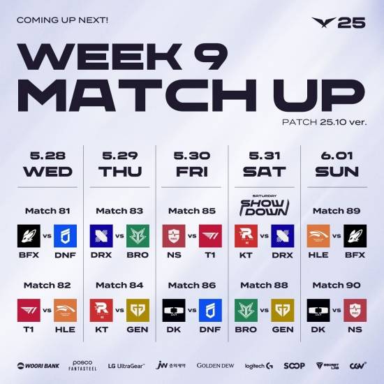 최근 '리그 오브 레전드(LoL)'의 이스포츠 한국 프로 리그인 'LCK'를 주최하는 '리그 오브 레전드 챔피언스 코리아'(대표 오상헌, 이하 LCK)는 5월 28일(수)부터 6월 1일(일)까지 서울 종로구 롤파크 LCK 아레나에서 '2025 LCK 정규 시즌' 9주 차를 진행한다고 밝혔다.