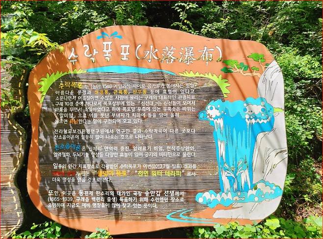 수락폭포는 구례 산동면 원촌리에서 약 4km 떨어진 수기리 중기마을 안쪽에 위치합니다.