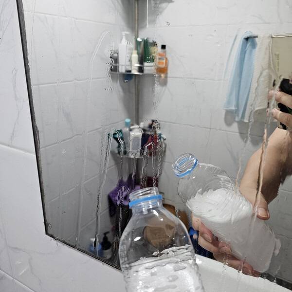 치약 세정액은 유리창과 거울 청소에도 탁월합니다. 페트병 세정액을 헝겊에 묻혀 닦으면 뿌연 얼룩이 사라지고 광택이 살아납니다. 특히 욕실 거울의 물때 제거에 효과적이라 별도의 세정제를 살 필요가 없습니다.