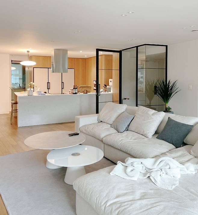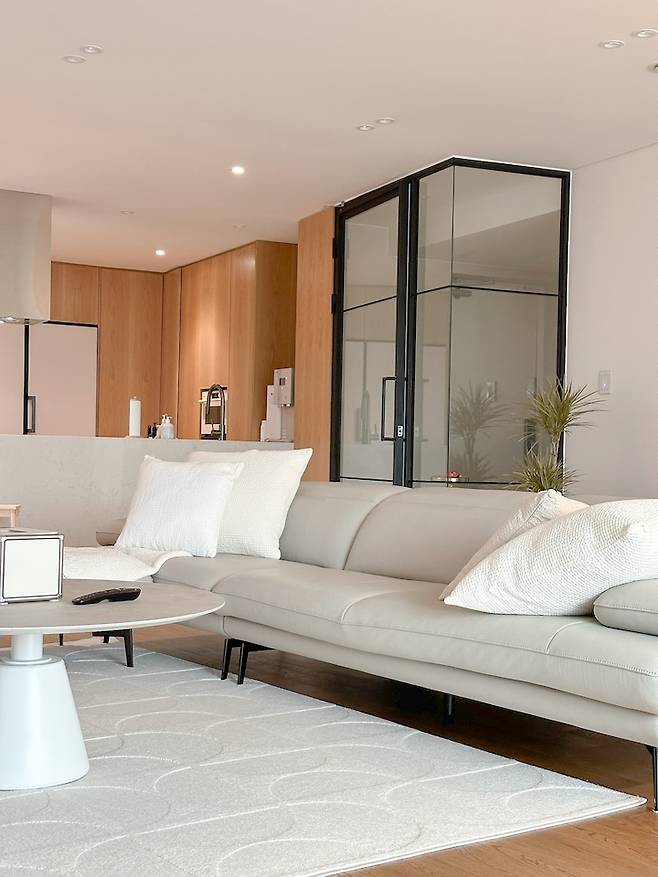 이 점을 활용하여, 인테리어 당시 넓은 거실을 부각할 수 있도록 업체에 요청드렸는데요. 덕분에 거실 공간이 답답한 느낌 없이 시원해 보이는 것 같아요.