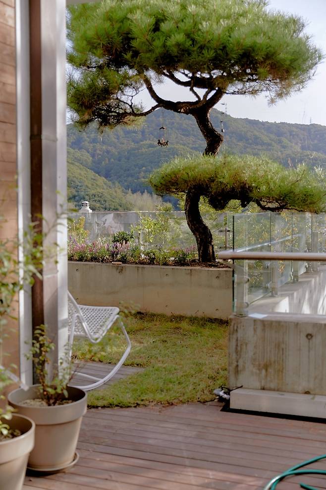 테라스를 통해 보이는 풍경은, 높은 건물이 없고 시야가 탁 트여있어 푸른 산의 모습을 온전히 즐길 수 있어요.