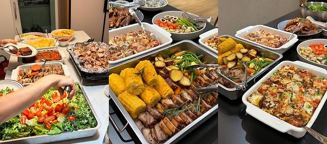이 아일랜드 식탁은 거실과 곧바로 맞닿아 있다 보니, 가족 행사에도 활용하기 좋더라고요! 그래서 가끔은 아일랜드 식탁에 음식을 케이터링하고 가족들을 초대해서 기념일과 같은 특별한 날을 더욱 의미 있게 즐기기도 했어요.