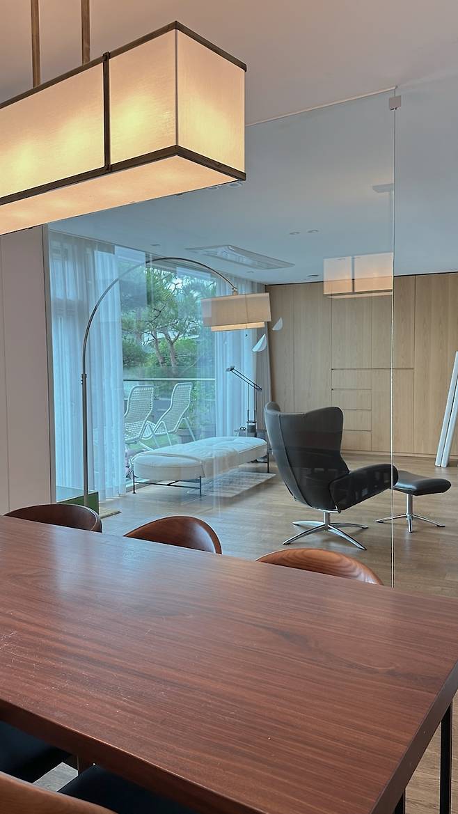 다이닝 룸과 거실 사이의 벽은 유리창으로 설치해서, 두 공간을 분리하되 조금 더 개방감 있는 사용이 가능하도록 했습니다. 실제로 손님들이 오시면 이 공간을 가장 좋아시더라고요!