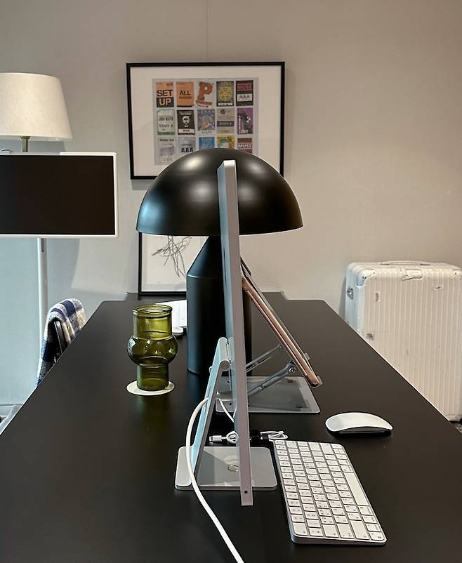서재가 넓지 않다 보니 공간을 실용적으로 사용하기 위해서 구상한 구조였는데요- 가끔 책상에 앉아서 마주 보며 각자의 할 일을 할 때면 꽤 전문적인 작업실 느낌도 나더라고요?