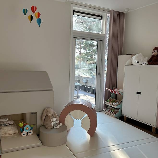 아마 첫째와 함께라서, 큰 공간을 두 아이 모두를 위한 놀이터로 마련해 주면 좀 더 효율적이고 만족스럽게 사용할 수 있지 않을까 기대 중이랍니다.