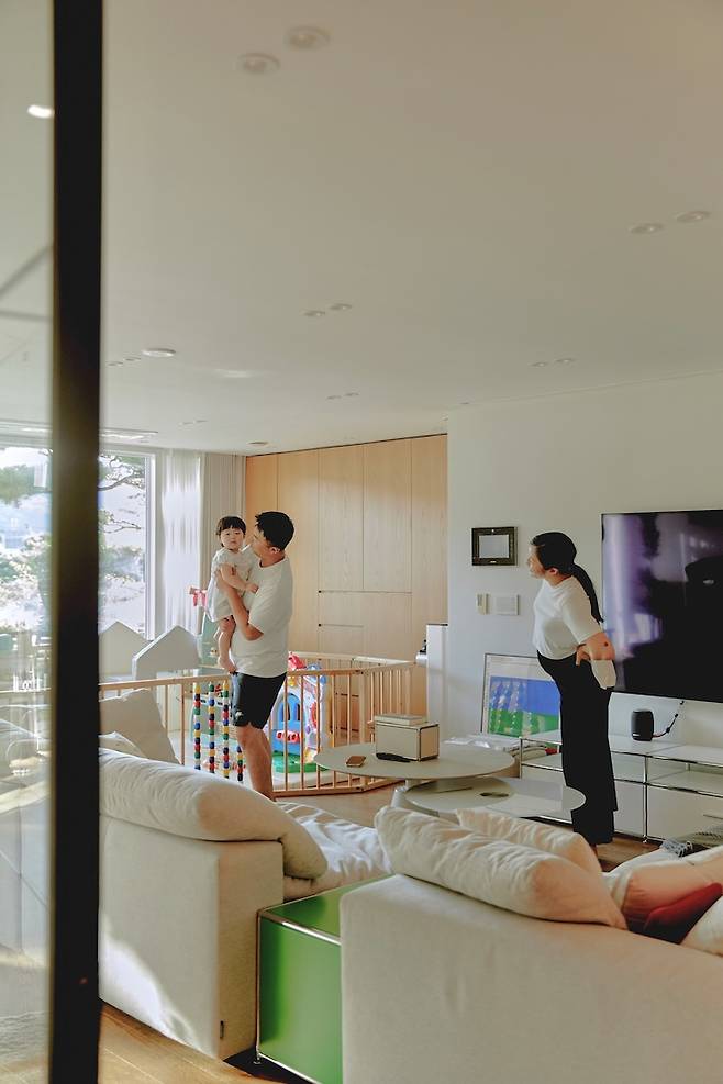 그러다 첫째 아이가 태어난 후에는, 집에 있는 시간이 많아지다 보니 공간에 조금은 지루함을 느꼈고 깔끔하기만 한 거실에 조금씩 변화를 주고 싶어졌어요.