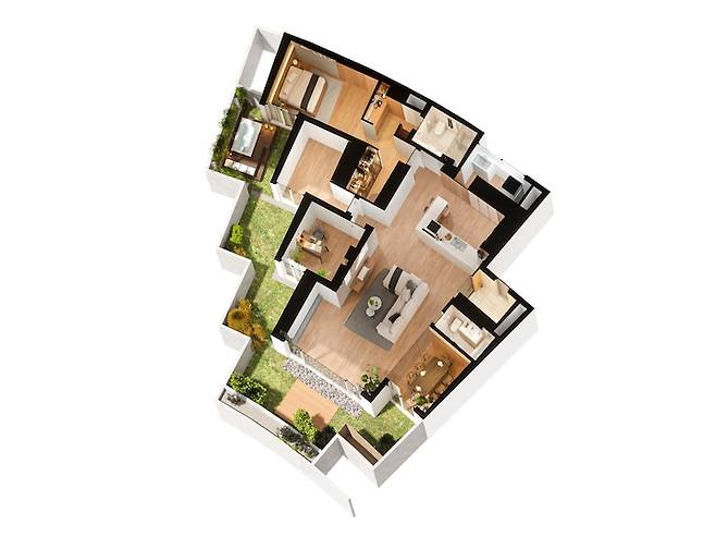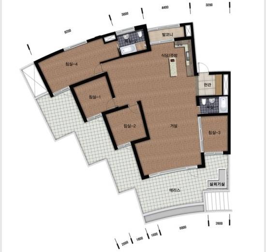 집 구조가 조금 특이하죠?😅 저희 집의 전체적인 구조는 부채꼴 모양으로, 일반적으로 정사각형의 모양인 공간이 없고 거실과 방 등 모든 공간이 테라스와 맞닿아 있어요.