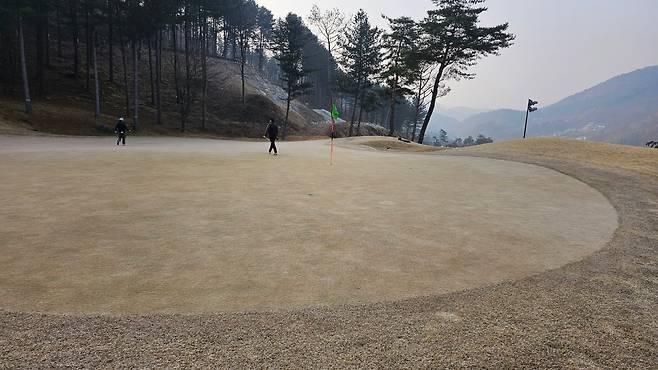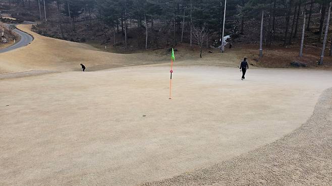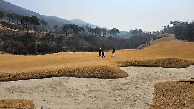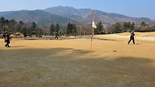 그린 잔디 상태는 그럭저럭 괜찮았습니다. 몇몇 홀은 모래가 많이 보이기도 했지만 봄이 되면 급겹하게 좋아질 것 같았어요. 지금도 라운드를 즐기기엔 괜찮다고 생각됩니다.