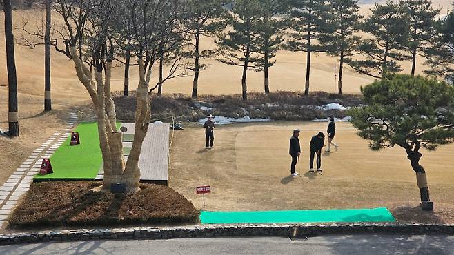 오전엔 그린이 꽁꽁 얼어 있었고 서리도 많이 껴있어 그린 스피드가 상당히 느렸습니다. 굴러가다 공이 멈춰 버리더라고요. 하지만 느린 그린 스피드보다 한 겨울 골프처럼 그린에 맞아도 다 튀어나가는 컨디션이 더 별로였습니다. 11시 넘어야 괜찮아지는 것 같아요. 아직은 오후 시간이 좋을 것 같습니다.