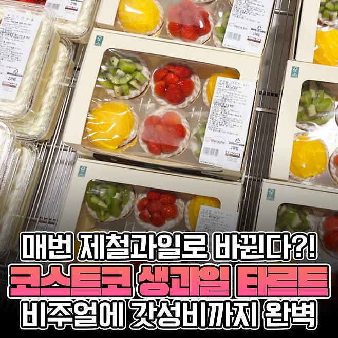 눈치 채셨겠지만 오늘 소개해 드릴 코스트코 디저트는 바로 <생과일 타르트>에요. 알록달록 예쁜 비주얼과 푸짐한 존재감 때문에 코스트코에 가셨다면 분명 시선을 빼앗긴 적이 있으실 거에요. 디저트 코너 냉장고에 진열되어 있는데, 한 바퀴만 돌고 와도 재고가 엄청 빠져 있더라구요.