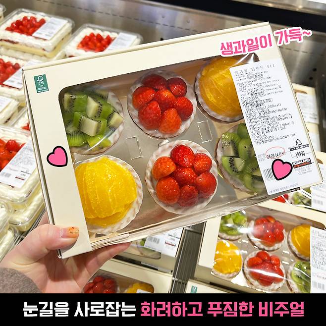 비주얼도 예뻐서 맛을 기대하고 있었는데 인기 있는 건 다 이유가 있더라고요~~ 우선 한입 먹자마자 과일이랑 타르트가 적당히 달고 새콤한 조합이 잘 어우러지는게 맛있었고 과일없이 타르트만 먹어도 눅눅하지 않아서 좋았습니다! 카페에서 파는 타르트 말고 이것만 계속 사먹고 싶어요. 가격대비 아주 굳♥️