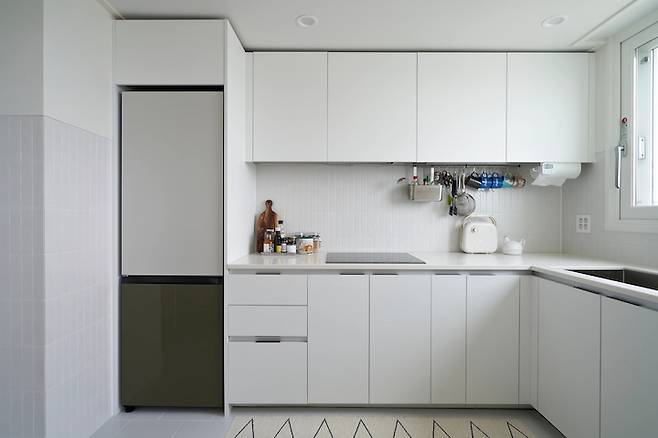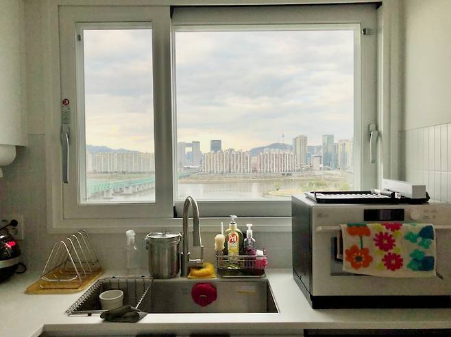 수전을 창가 쪽으로 옮긴 덕분에 설거지 뷰가 좋아졌어요 :-) 주방이 협소하다 보니 필수 소형가전인 전자레인지나 에어프라이어, 토스트기 등등 따로 사서 두기가 힘들 것 같더라고요. 그래서 엘지 오브제 광파오븐으로 구매했습니다. 하나로 다양한 기능을 사용할 수 있어 공간 활용도도 높고 요긴하게 잘 쓰고 있어요.