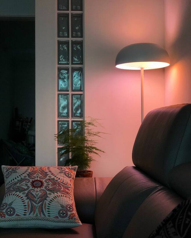 제가 은근 겁이 많아서 먼저 퇴근해서 아무도 없는 깜깜한 집이 괜스레 무섭더라고요. 그래서 이케아 뉘모네 조명에 필립스휴 전구를 설치해 제 퇴근 시간에 맞추어 불이 켜지도록 설정해두었어요 :-) 덕분에 퇴근 후 아늑한 집으로 들어올 수 있어 너무 좋아요! ㅎㅎ