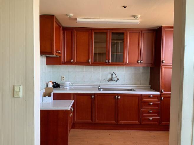 Before 사진 보시면 아시겠지만 원래 수전이 주방 정면에 있었는데 수전을 창가로 옮기고 정면에는 조리대와 하이라이트로 구성했습니다.
