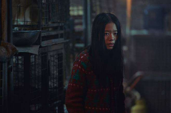 -금화(이재인)를 죽이기 위해 집으로 찾아온 정나한.(박정민) 이때 나한의 존재를 알게된 우리에 갇힌 '그것'이 섬뜩한 목소리로 알아듣기 힘든 언어로 무엇이라고 말한다.