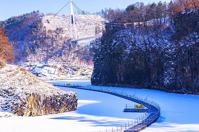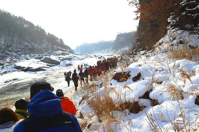 코스를 따라 참가자들은 한탄강의 수려한 자연 경관을 감상하며 겨울철 특별한 경험을 할 수 있습니다.