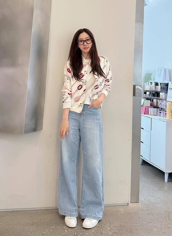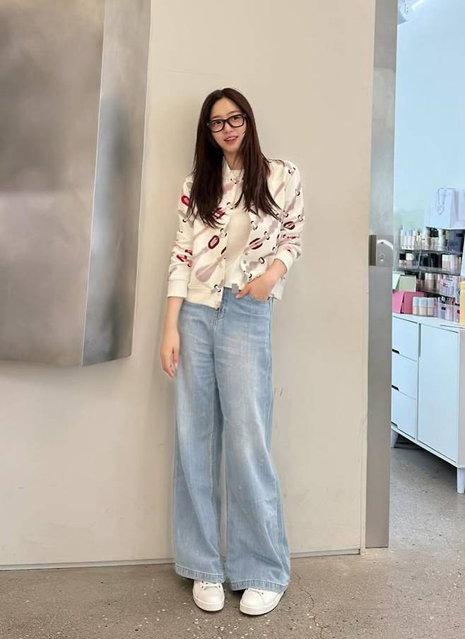 공개한 사진에서 함은정은 긴 생머리에 검은색 나무안경을 쓰고 데님 팬츠에 카디건을 걸친 데일리룩으로 시크하면서도 스타일리시한 매력을 드러냈다.