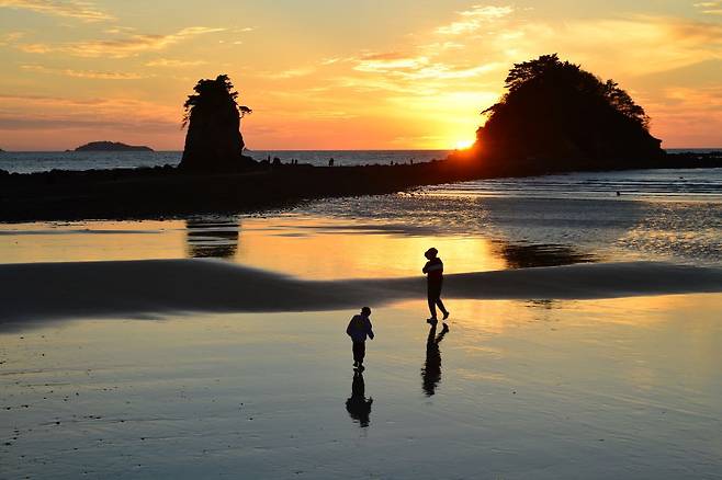 밀물 때 바닷물이 백사장 안쪽까지 밀려들어 작은 호수를 만들어 내는데, 이때의 풍경이 정말 장관입니다.