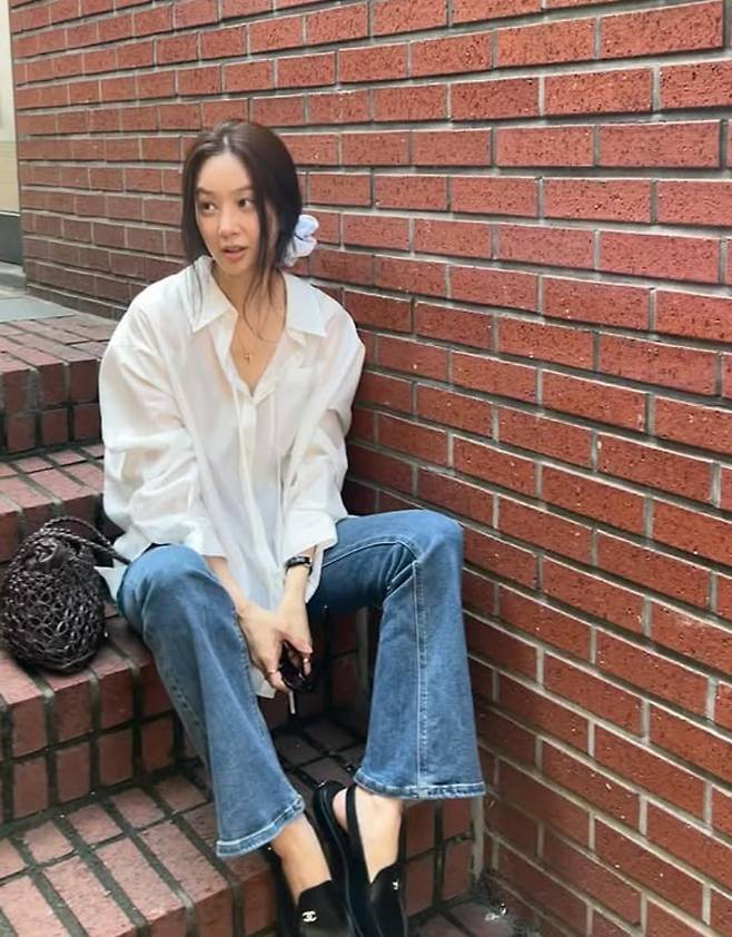 오버핏 화이트 셔츠는 여름에 빠질 수 없는 필수 아이템인데요. 정려원은 이 셔츠를 청바지와 함께 자연스럽게 매치해 여유로운 감성과 동시에 세련된 멋을 살렸습니다. 화이트 셔츠의 청량함과 캐주얼한 데님의 만남은 편안하면서도 스타일리시한 초여름 코디로 제격이죠.