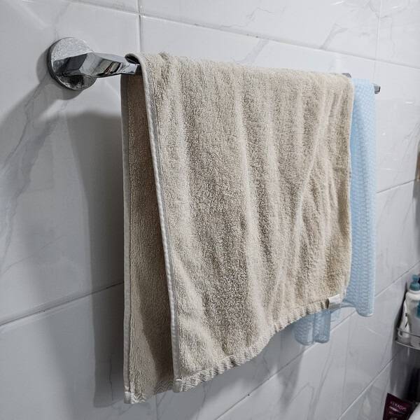 욕실 내 수건걸이는 벽면이 습기를 그대로 전달받기 때문에 마르는 속도가 느립니다.