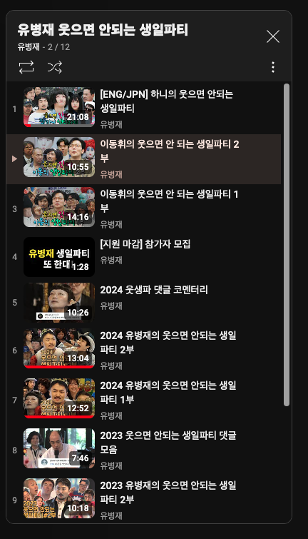 재생목록을 확인해 보니 웃으면 안 되는 생일파티 시리즈가 벌써 12개나 있다.