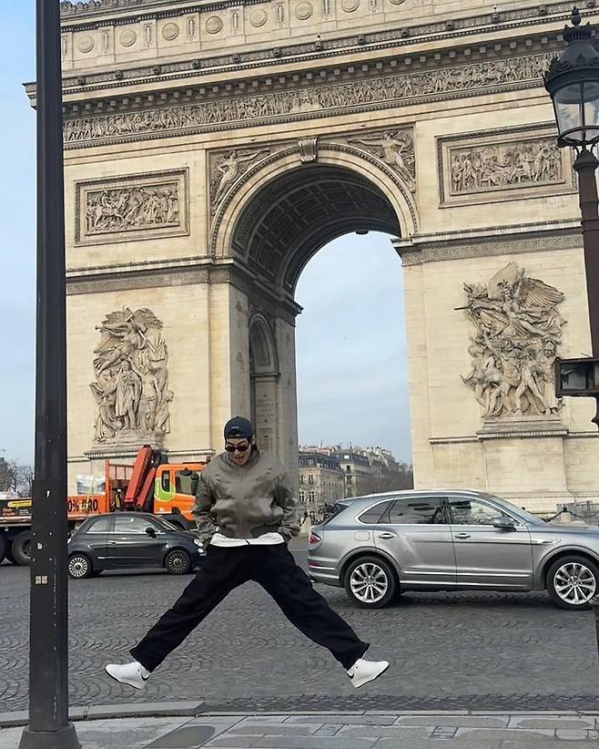 사진 속 차은우는 파리의 랜드마크인 개선문을 배경으로 자유로운 포즈를 취했다. 도로 한가운데서 자연스럽게 걸어가는 모습이나, 점프를 하며 생동감 넘치는 장면을 연출한 그는 파리의 분위기를 온전히 즐기고 있는 듯했다.