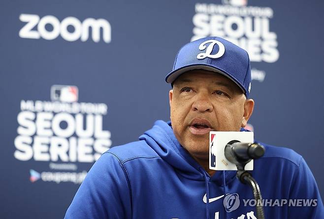 (서울=연합뉴스) 류영석 기자 = 21일 오후 미국프로야구(MLB) 공식 LA다저스 대 샌디에이고 파드리스 2차전 경기를 앞둔 서울 고척 스카이돔에서 로스앤젤레스 다저스 데이브 로버츠 감독이 기자회견을 하고 있다. 2024.3.21