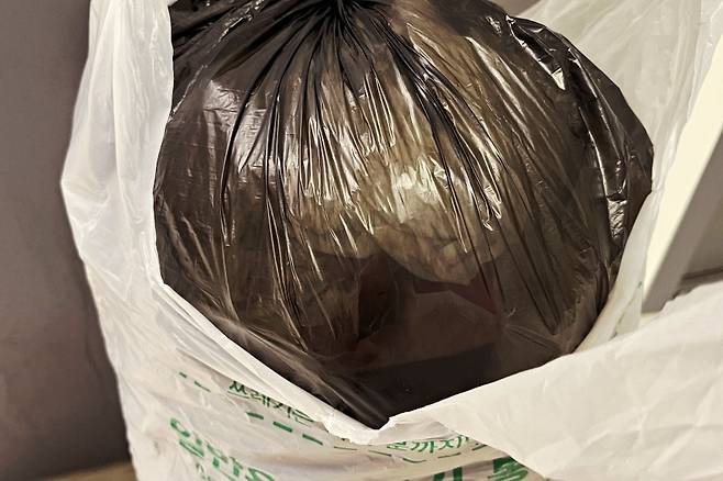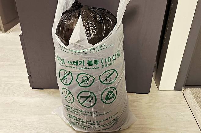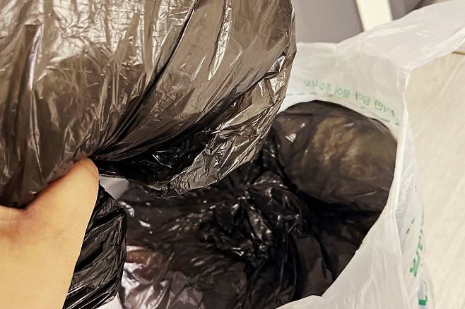 평소 위의 사진처럼 입구까지 쓰레기가 차면 보통 그냥 버리게 되는데요. 쓰레기도 너무 많이 차면 입구를 꽉 묶기도 힘들어지더라고요.