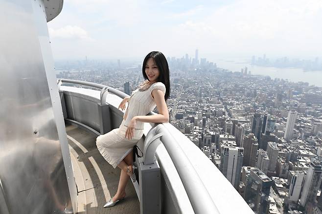 비비가 미국 뉴욕의 상징인 엠파이어 스테이트 빌딩 전망대에서 찍은 사진을 공개하며 특유의 힙한 에너지를 발산했어요.