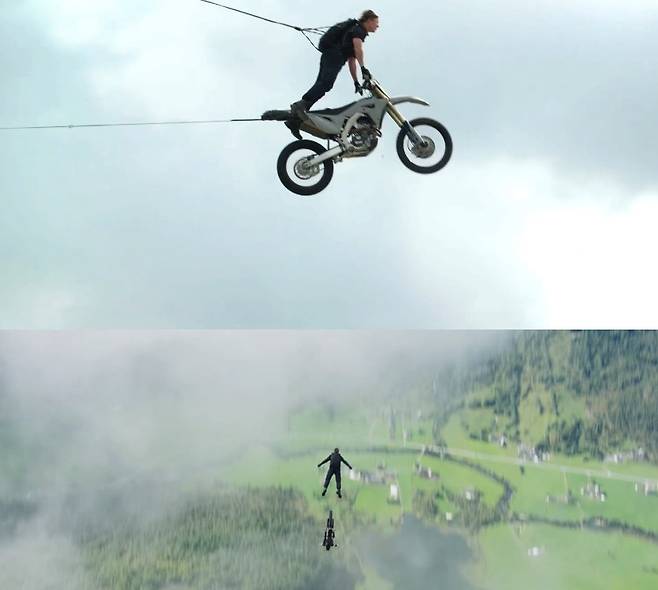 개봉 전 공개된 '미션 임파서블7'의 스케일은 전작들을 뛰어넘기에 충분했다. 세계 영화 팬들의 눈길을 가장 사로잡았던 신은 바로 노르웨이 9분 풀타임 영상. 영상에서 톰 크루즈는 오토바이를 탄 채로 절벽에서 낙하하는 역대급 신을 선보였다. 시리즈가 거듭될수록 '전편을 어떻게 넘을 것인가?'를 고민을 한다는 톰 크루즈와 제작진의 각고의 노력이 엿보이는 신이다.