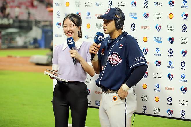 전풍 사장이 인사를 건네자 이승엽 KBO 총재특보(SBS 해설위원)는 고개를 숙여 답례했다.