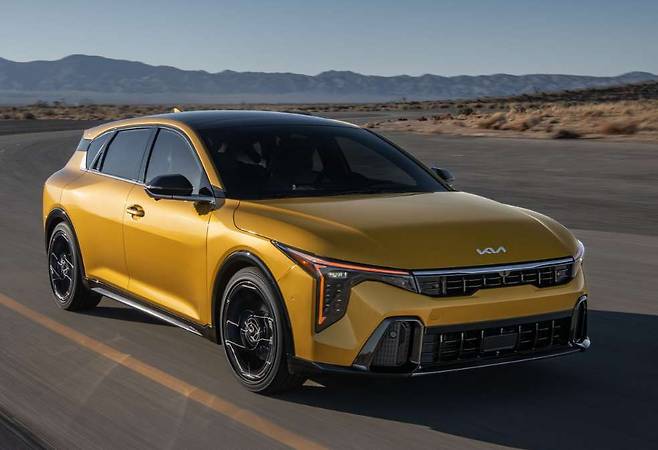 외관은 K4 세단과 마찬가지로 수직형 LED 주간주행등과 EV9에서 이어지는 디자인 언어를 그대로 반영했다.