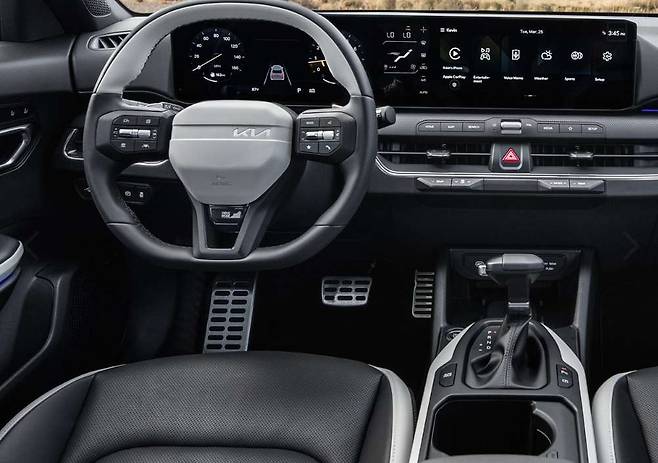 실내는 디지털 감성이 주를 이룬다. 12.3인치 디지털 클러스터와 동일한 크기의 센터 디스플레이를 가로로 길게 배치한 일체형 와이드 디스플레이는 고급차 못지않은 시각적 완성도를 보여준다.