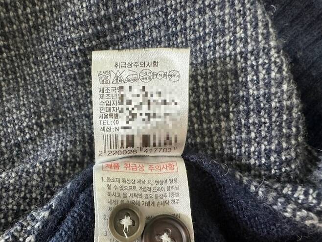 먼저, 세탁기에 돌려도 되는지 니트 안쪽에 라벨을 확인해 주세요. 주의사항대로 세탁해야 문제가 없다는 거 꼭 기억해주세요!