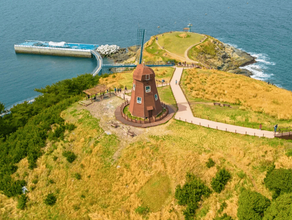 언덕 위에 서 있으면 모든 방향으로 바다가 펼쳐지고, 하얀 풍차와 함께 담기는 그림 같은 전경은 어느 화가가 그려낸 남유럽 풍경과도 흡사한데요. 실제로 바람에 머리카락이 흩날릴 때, 자신이 하나의 풍경 안에 들어와 있는 듯한 느낌을 받게 됩니다.