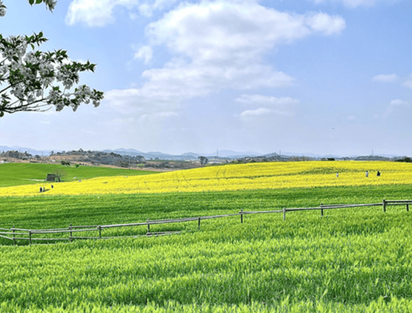 이곳의 특별함은 바로 ‘움직이는 정적’에 있는데요. 사람의 손이 닿지 않은 듯한 넓은 밭과, 그 사이로 부는 바람이 만들어내는 리듬은 어떤 전시에서도 느낄 수 없는 감동을 줍니다. 멀리서 보면 초록의 바다가 흔들리는 듯한 장면은 실제로 눈앞에 있어도 믿기 어려울 만큼 아름답습니다.