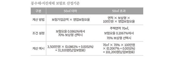 보험요율은 보험개발원에서 지역별 풍수해 손해 통계를 기초로 산정된다. 지역별로 피해율 또는 손해율이 다르기 때문에 요율이 각기 다르다. 보험요율 및 보험료 계산은 ‘풍수해 보험관리지도 통합관리 시스템(www.sfim.go.kr)’에서 확인할 수 있다.