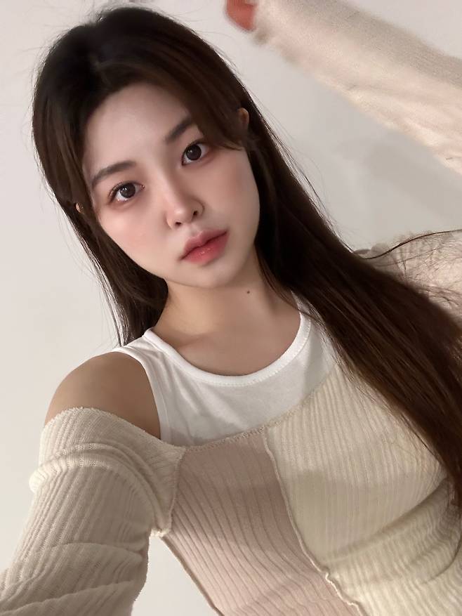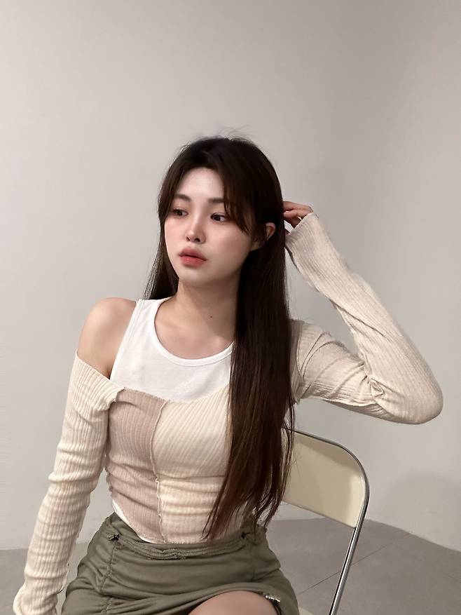 얇은 봄 소재의 오프숄더 니트와 스트링 디테일의