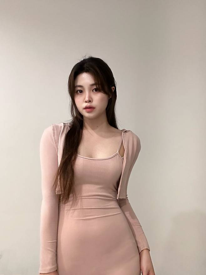 인디핑크 컬러의 러블리한 느낌의 카디건 원피스 세트로