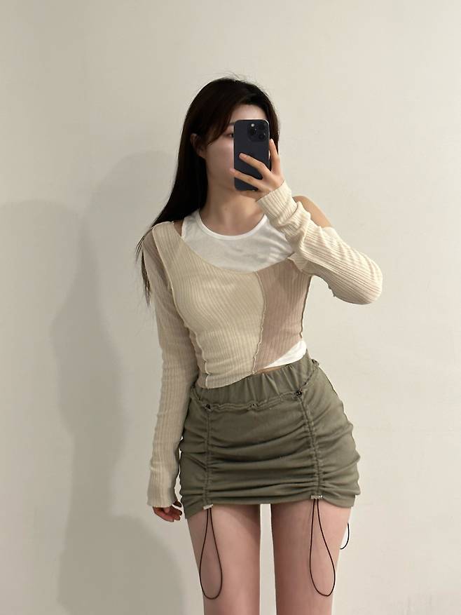롱 슬리브 디자인이지만 노출 디테일로 답답하지 않는