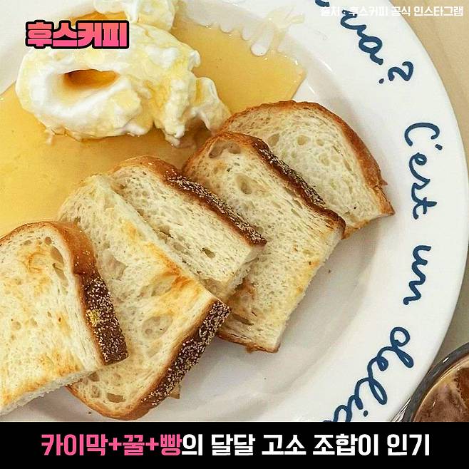 사실 후스 커피는 이 라떼보다도 더 유명한 것이 있는데요. 바로 카이막이에요. 꿀과 카이막을 빵에 같이 올려 먹으면 진한 우유의 향과 달달한 꿀이 입안 가득 퍼져 꾸덕+고소+달달의 모든 맛을 느낄 수 있어요.