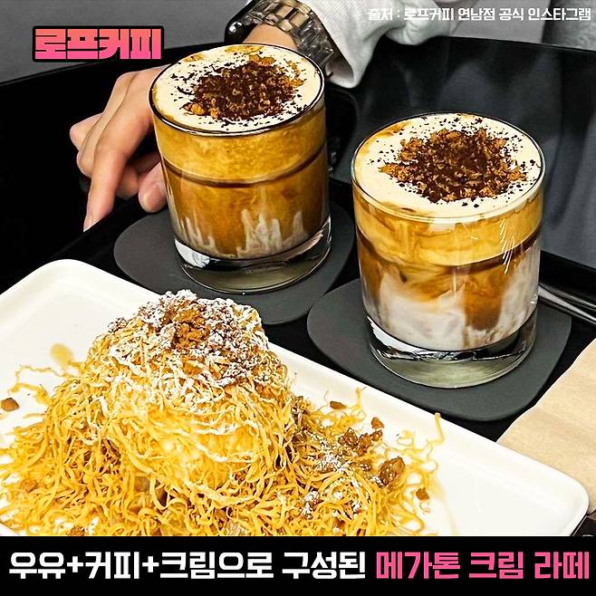 메가톤 크림 라떼도 로프커피의 시그니처 메뉴인데요. 달달하고 고소한 우유+커피+부드러운 크림, 이렇게 3층으로 나누어져 있어요.