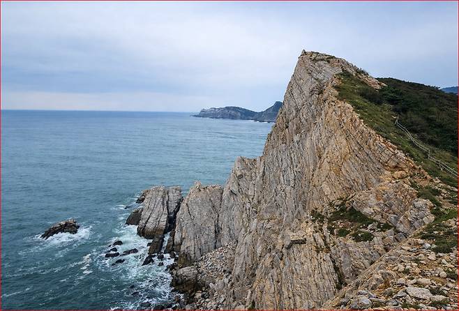 대청도는 섬 전체가 국가지질공원으로 지정되어 있습니다. 농여해변의 나이테바위는 약 10억 년 전 지각 변동의 흔적을 보여주는 지질 자원으로, 지층이 세로로 솟아 나무의 나이테처럼 보이는 독특한 형태를 띱니다.